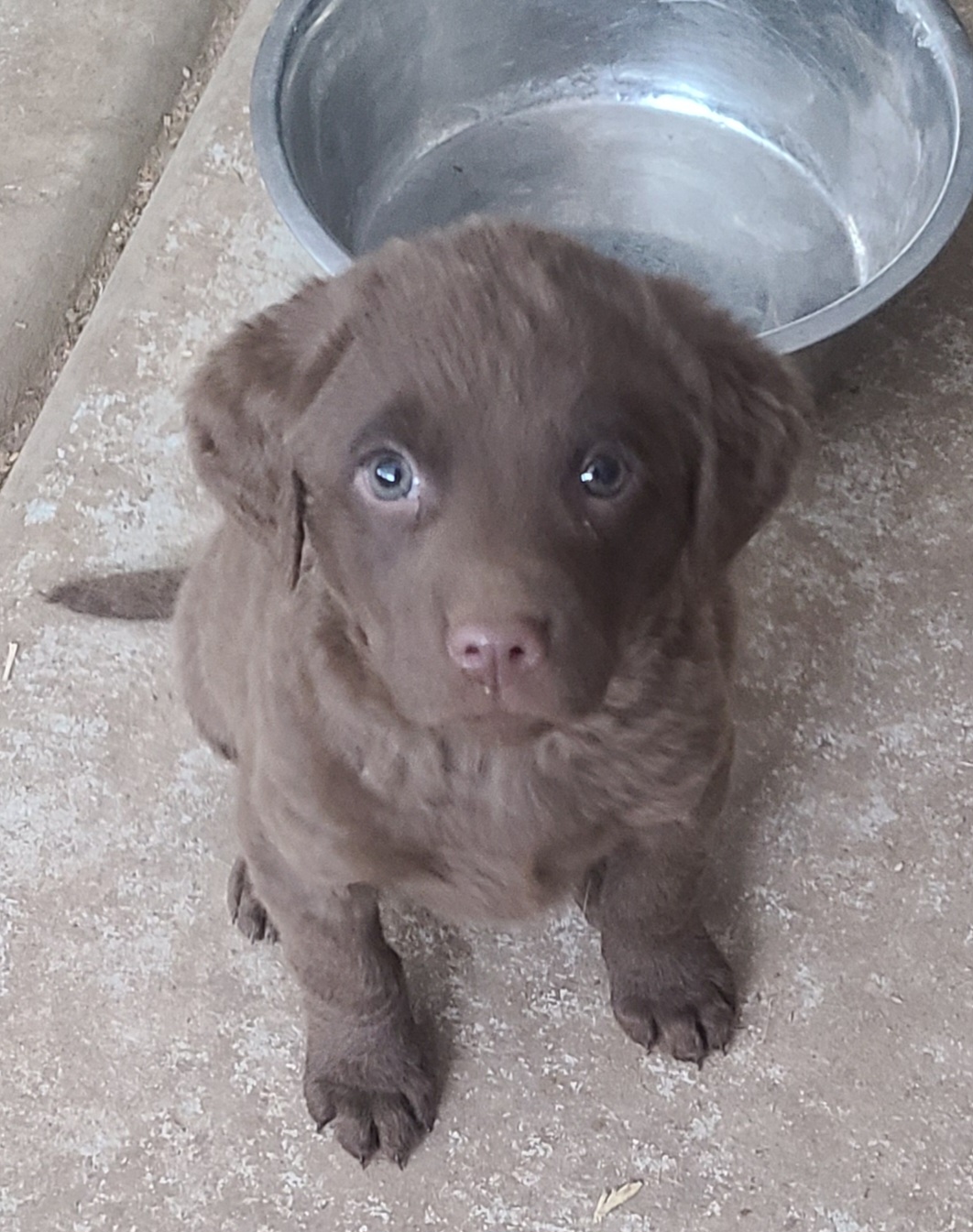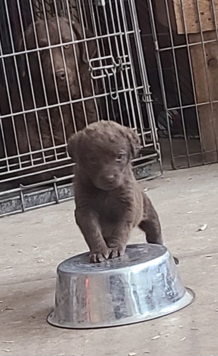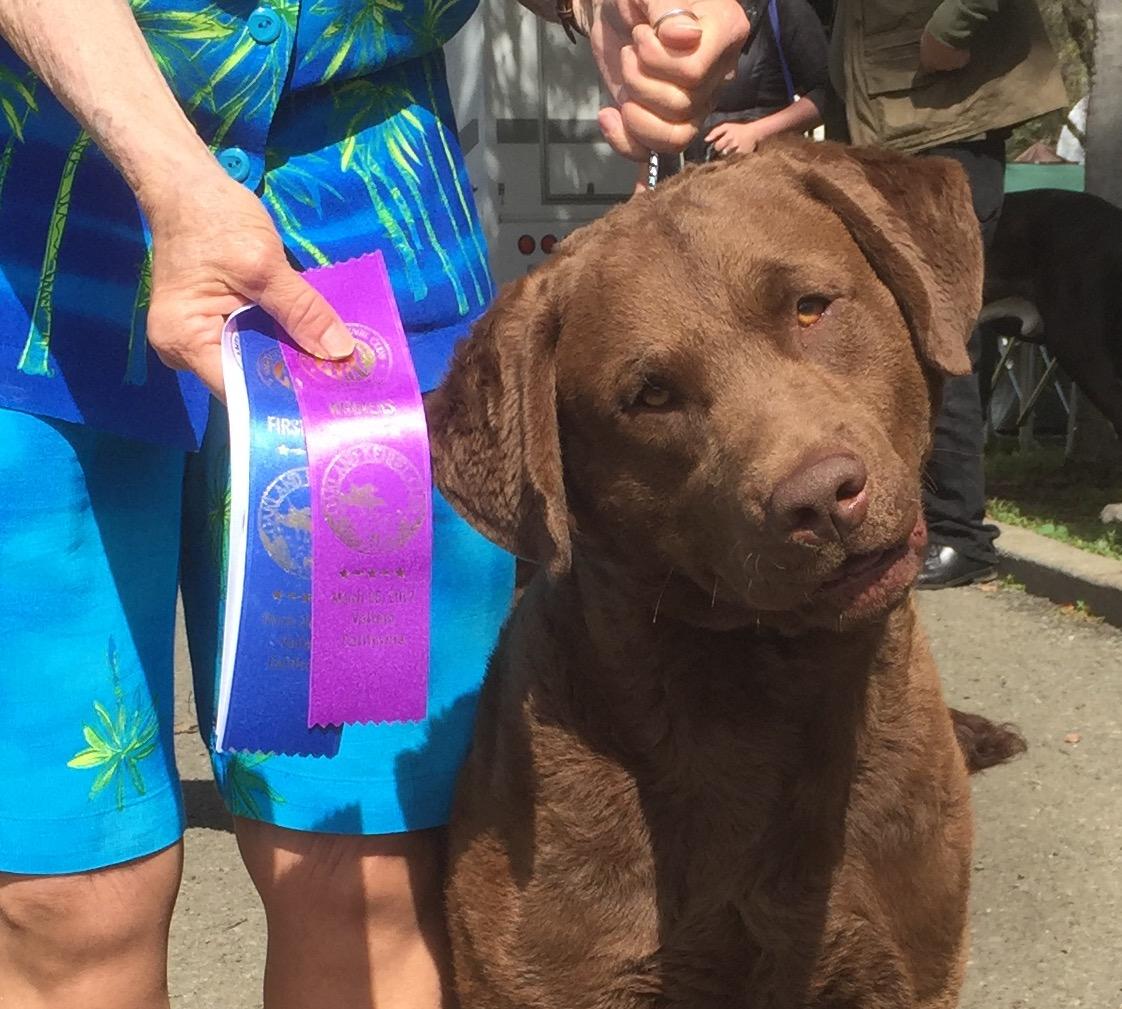 Shooter is a male Chesapeake Bay Retriever. Carefully selected as a great representative of his breed, Laurie decided to make him part of their program. Laurie has passed Good Dog’s screening process, which involved a review of their breeding practices, environment, and the mental and physical health of their dogs.