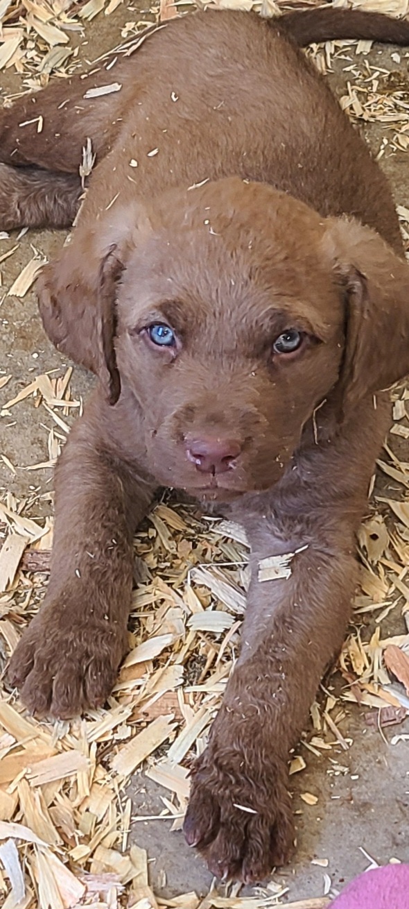 Colt is a male Chesapeake Bay Retriever. Carefully selected as a great representative of his breed, Laurie decided to make him part of their program. Laurie has passed Good Dog’s screening process, which involved a review of their breeding practices, environment, and the mental and physical health of their dogs.