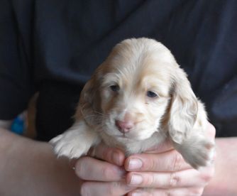 Lady is the sweetest most outgoing Dachshund who would follow me to the end of the earth and back! She is an Akc Duel Champion with a phenomenal pedigree and personality for days:) she is everything I needed to start on my journey of producing the best dachshund puppies I could hope of and I'm so grateful to her breeder and mentor Cynthia Ruckman for blessing me with this beautiful girl! She won two first places in her Field Championship time which is pretty special 😉 She also completed her Akc Championship with 3 Majors along with her points, we will be taking her out to play with a grand after her puppies are in new homes 💕