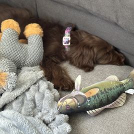 Stephanie helped us every step of the way. We visited the puppies in person and Stephanie addressed every question we had quickly! Daisy is such a joy!!! She is very smart, loves people, dogs, the outdoors, playing, cuddling and belly rubs. She even likes watching tennis with us. She makes us laugh every day!!!