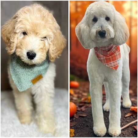 Our Poodle puppies are toy size. Goldendoodle puppies include miniature and medium sizes. Aussiedoodle puppies are mini size. Sizes will vary depending on the parent dogs.