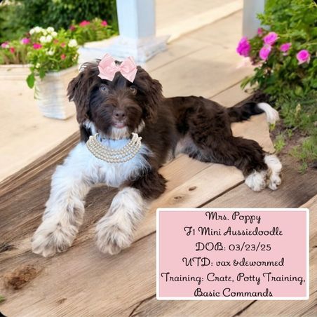 My experience with Designer Doodles has been amazing! I picked out one of the male mini-ausies by the pictures and names. When I went to see the puppies and explained to Stephanie my needs and the needs of my 7 year old Border Collie rescue, she recommended a different pup. Charlie has been the absolute perfect match for me and my Border Collie. We are now the perfect "family." Charlie has brought love and laughter to our home. He is a quick learner. He watches his big sister and follows what she models. He is very in tune with me and waits on me for the cues to do what is expected. Designer Doodles did a fantastic job of preparing him for entering our home and quickly acclimating to our busy life. They have prepared Charlie very well for his new life. You can tell how much they love each puppy and want to find the perfect home for them. They provide instruction and recommendations for the items needed to for making their life the best it can be. They are happy to answer any questions about raising your new puppy. If you are looking for a new fur baby, please visit Designer Doodles of South, GA before you go to any other breeder. I think you will find you don't need to go to any other breeder!