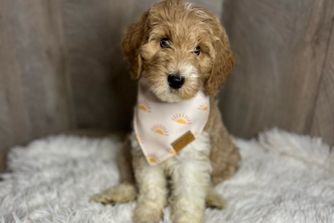 Goldendoodle puppies include cream, apricot, red, and parti. Colors will vary depending on the parent dogs.