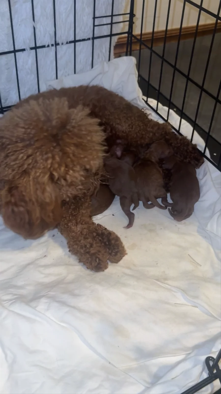I started breeding by accident! While out of town, my mom was watching my male poodle, and he managed to breed with her female. That unexpected litter sparked my passion for raising happy, healthy toy poodles. Now, I focus on providing well-socialized puppies who bring joy to their forever families, all raised with love and care in my home.