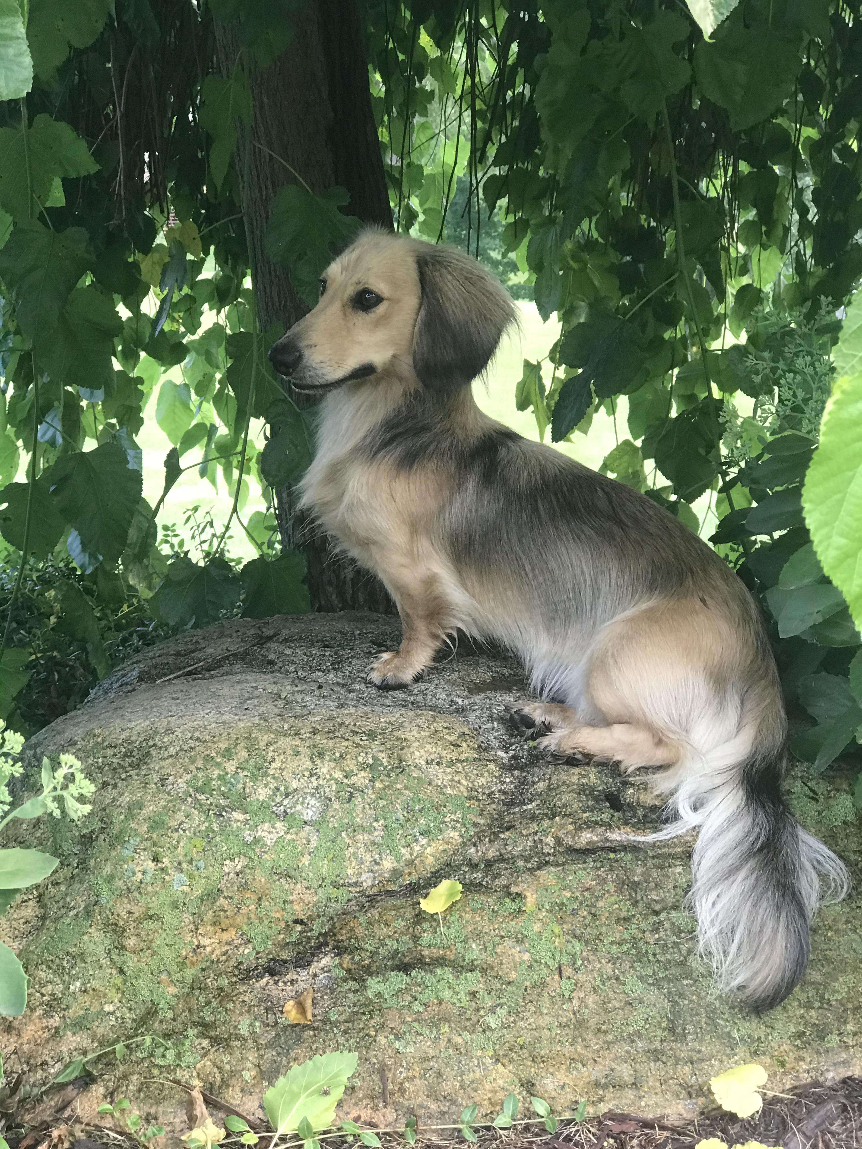 Elsa is a female Dachshund. Carefully selected as a great representative of her breed, Rita decided to make her part of their program. Rita has passed Good Dog’s screening process, which involved a review of their breeding practices, environment, and the mental and physical health of their dogs.