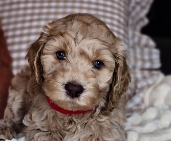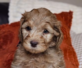 Our Cockapoo puppies include red, cream, and buff. Goldendoodle puppies include cream, apricot, red, chocolate, black, and phantom. Labradoodle puppies include red, apricot, cream, chocolate, cafe, lavendar, black, blue, and silver. Australian Labradoodle puppies include merle, black and chalk, caramel, apricot, cream, chocolate, cafe, lavendar, black, and blue. Colors will vary depending on the parent dogs.