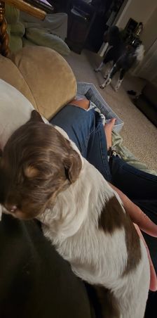 Kipper has instantly become a part of our family. He loves playing with his big brother Maverick, which has exceeded our expectations. Kipper has learned a lot including his name, sit, touch and give paw. Kipper really enjoyed his outing to Home Depot this week. We are still working on potty training but he is perfect!!!