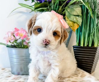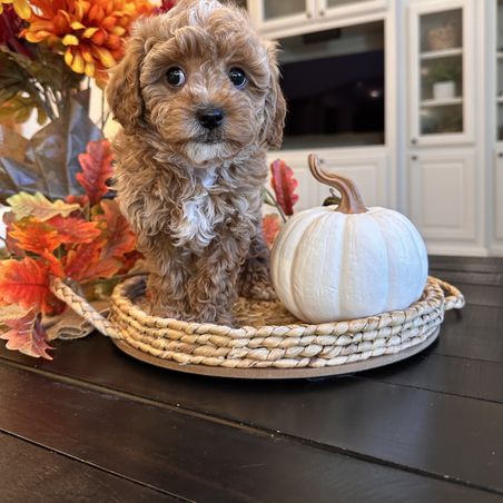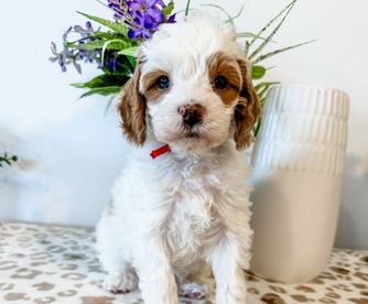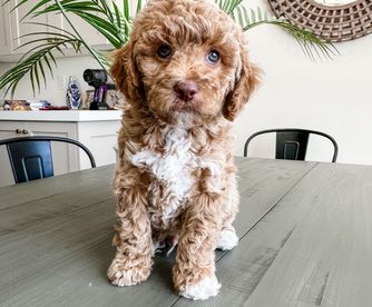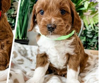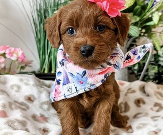 Our Goldendoodle puppies include cream, apricot, red, and parti. Poodle puppies include apricot, cream, red, and parti. Cavapoo puppies include chocolate, red, cream, blenheim, and apricot. Colors will vary depending on the parent dogs.