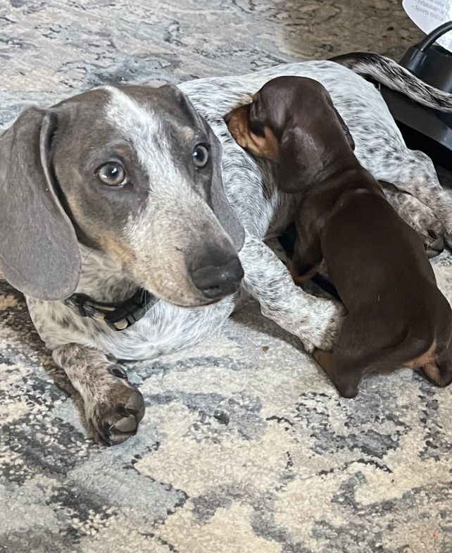 Peewee is a female Dachshund. Carefully selected as a great representative of her breed, Destiny decided to make her part of their program. Destiny has passed Good Dog’s screening process, which involved a review of their breeding practices, environment, and the mental and physical health of their dogs.