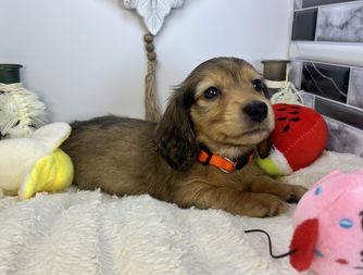 Roxy is a true sable! She is a long hair and is registered to CKC as a purebred Miniature Dachshund. She is very loving and loyal!