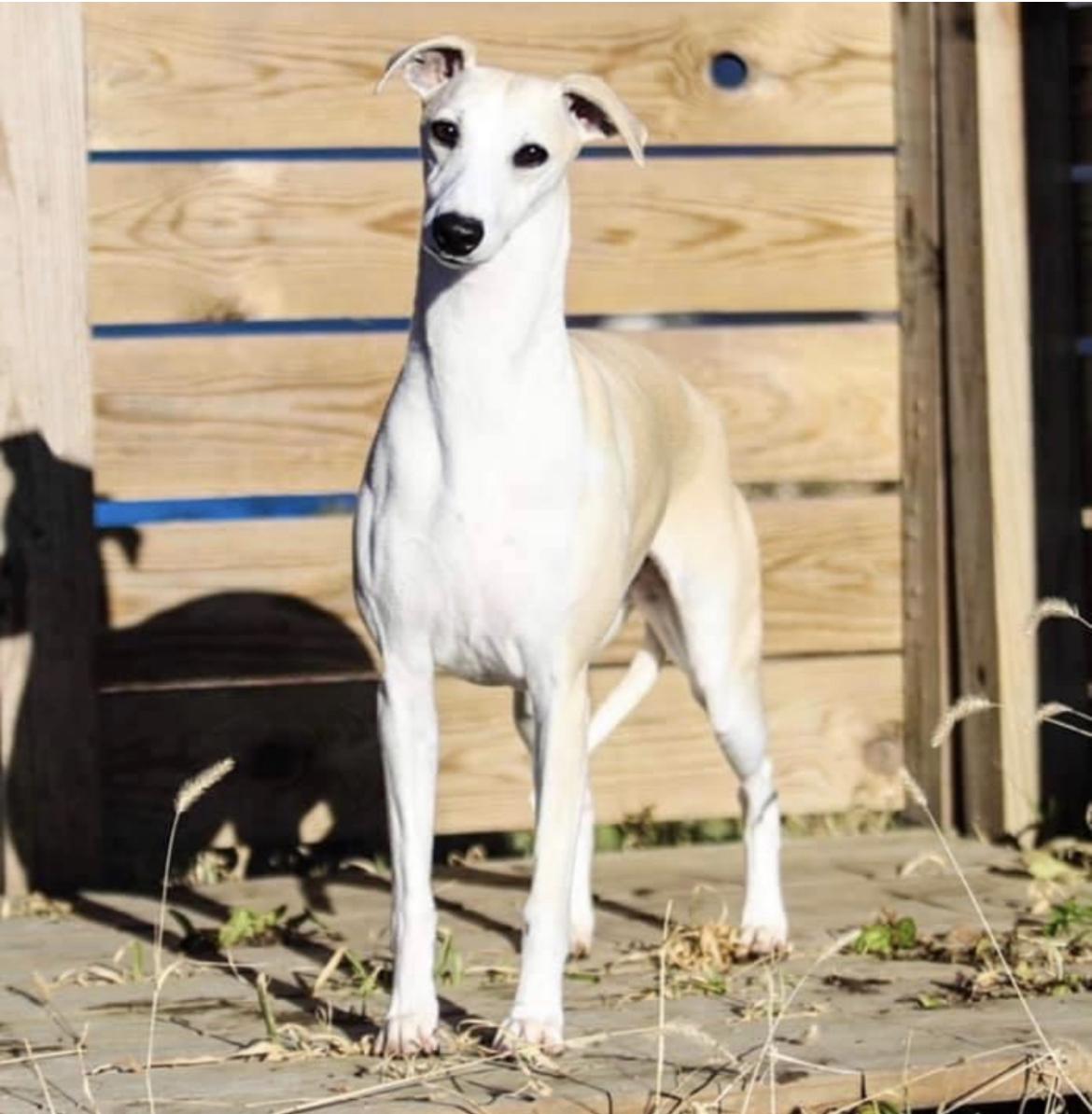 Violet is a female Whippet. Carefully selected as a great representative of her breed, Devon decided to make her part of their program. Devon has passed Good Dog’s screening process, which involved a review of their breeding practices, environment, and the mental and physical health of their dogs.