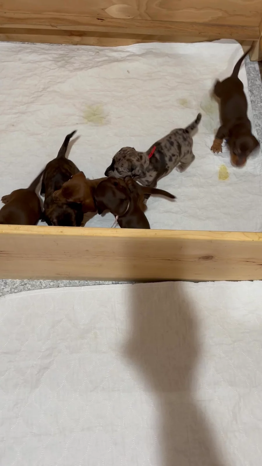 Here are some pictures of Ruby’s puppies. All the puppies have their eyes open now and are beginning to toddle and play. They are so adorable to watch. 2 females and 2 males are still available as of 6/28/25.
