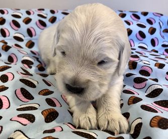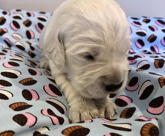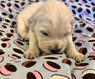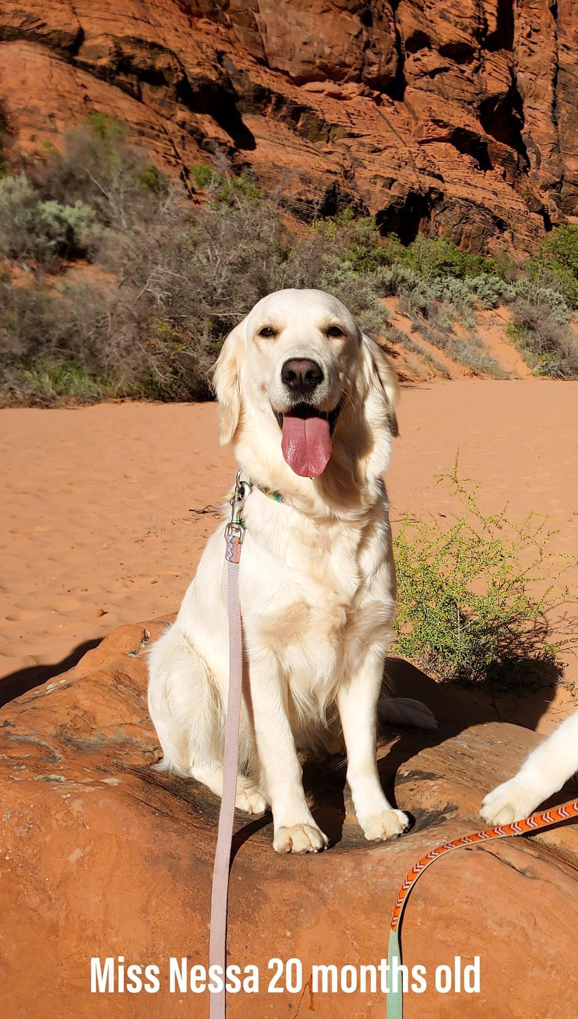 I'm Britta N., the breeder behind Dewbury Dream Goldens located in Hurricane, UT. Our dogs are fully OFA Health tested. They are also Genetic tested. They have their AKC Canine Good Citizens Award. Puppies are raised inside our home, using the Puppy Culture Method & Temperament Tested, using the Volhard Method. LOTS of Desensitization, Socialization, Training, & Cuddling has been given to each pup. I do NOT breed if they don’t pass the OFA Clearences 😜.