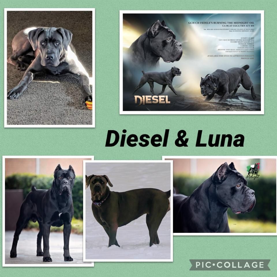 Diesel is a male Cane Corso. Carefully selected as a great representative of his breed, Marylou decided to make him part of their program. Marylou has passed Good Dog’s screening process, which involved a review of their breeding practices, environment, and the mental and physical health of their dogs.