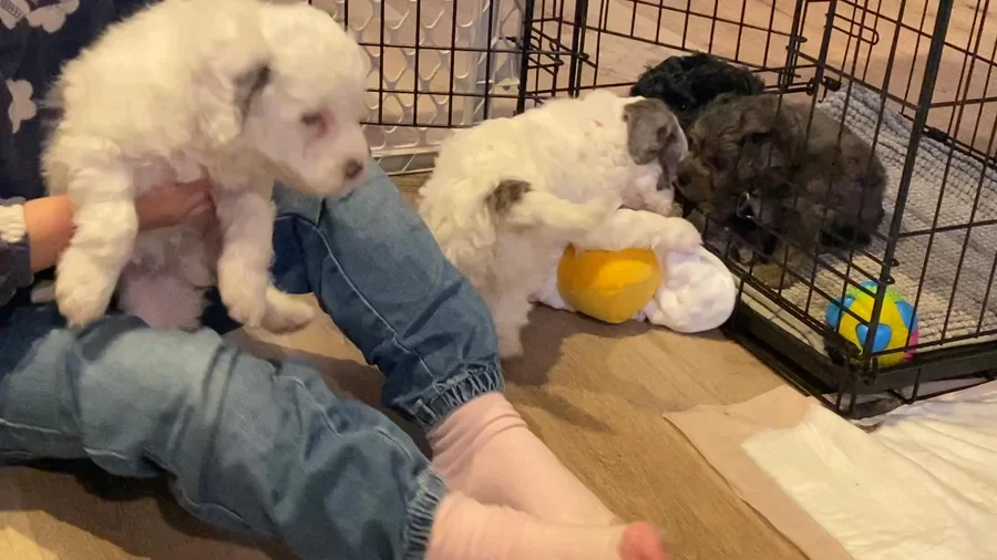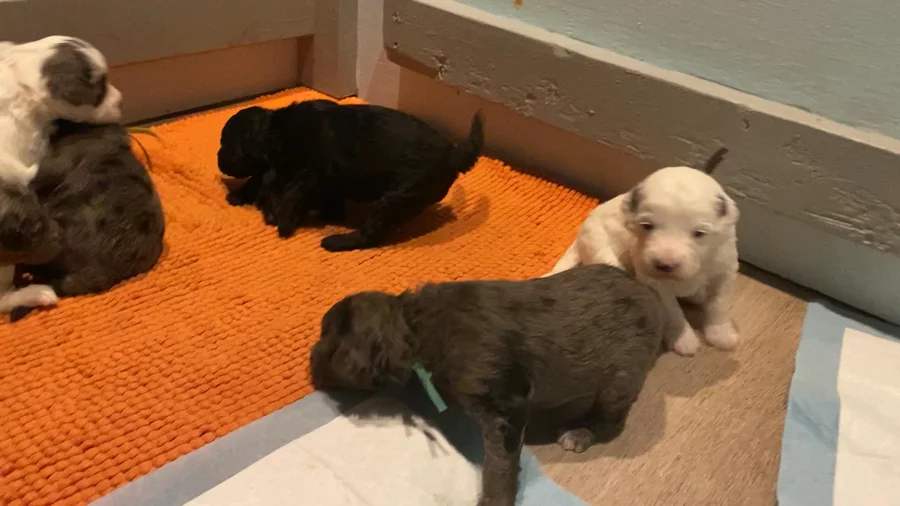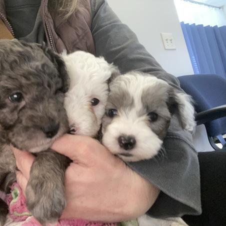 Our puppies include apricot, black, merle, and parti. Colors will vary depending on the parent dogs.