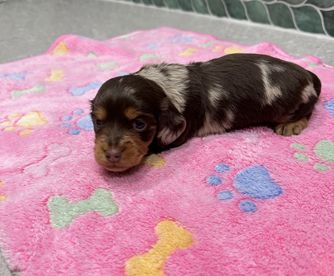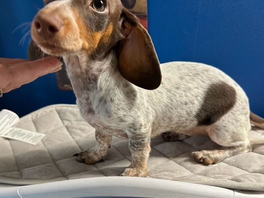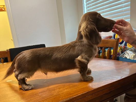 I can’t recommended Shelly and her puppies enough if you’re looking for a happy and healthy doxie! She is so knowledgeable on the breed and has the most beautiful, socialized, healthy and loving puppies. ❤️ She is great at communicating and stayed up to date with me throughout the entire wait time; sending photos of my boy and updates on how he was doing - making the wait much less painful for me! 😂 Even sent me home with a bag of toys, supplies, and extra goodies for him to help adjust to his new home. Will definitely go to Shelly again and recommend to all friends for any future puppy needs 🐾