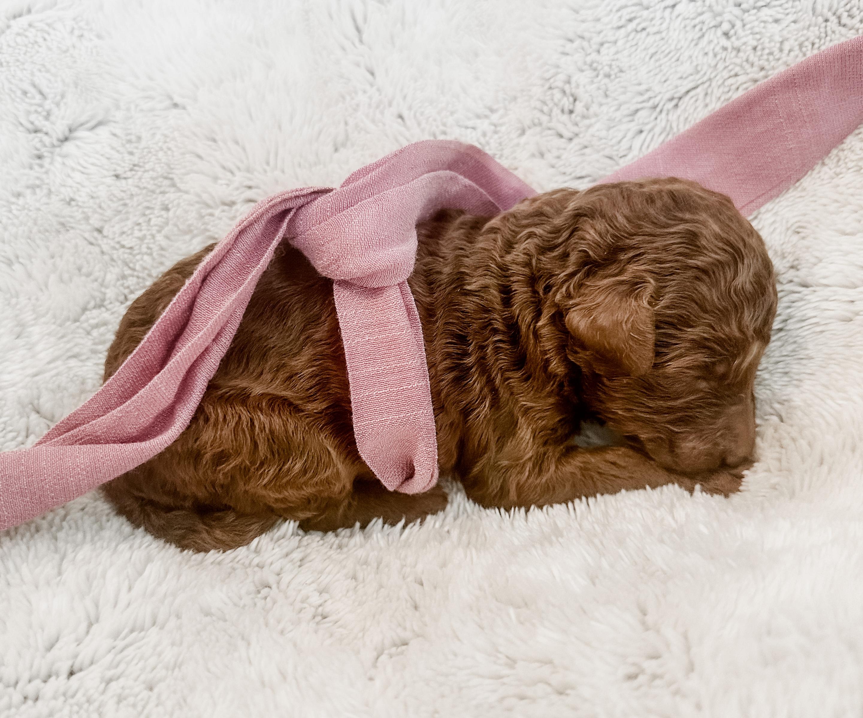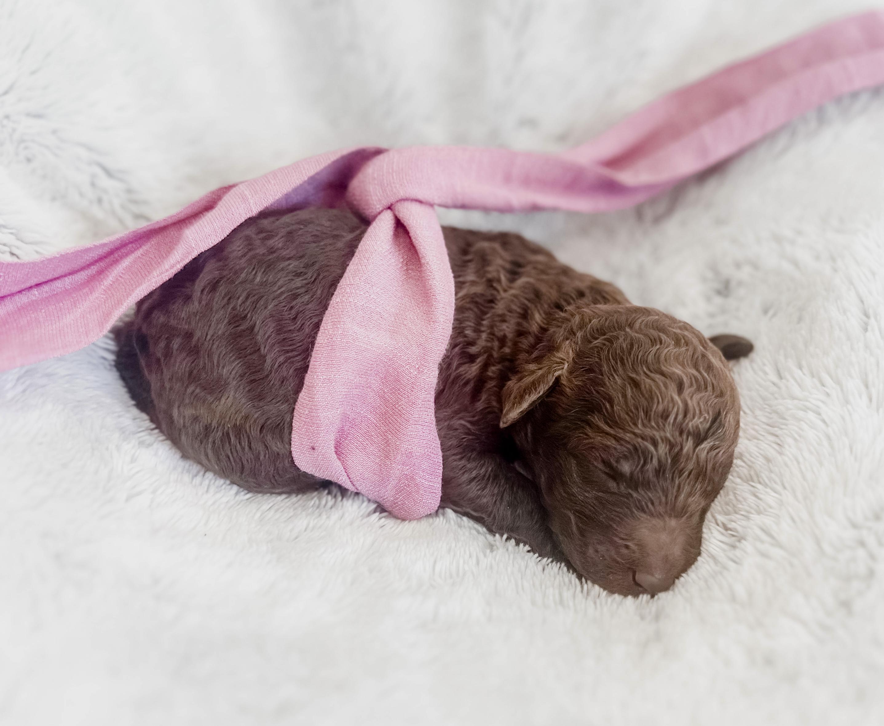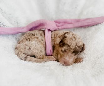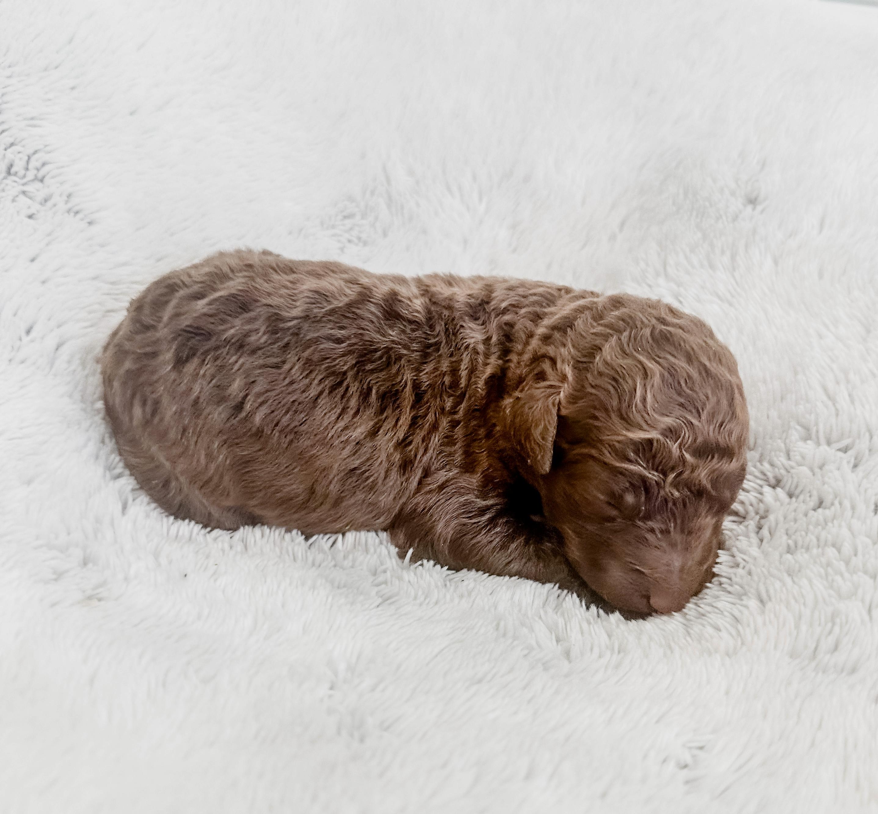 Mocha is a female Labradoodle. Carefully selected as a great representative of her breed, Daylia decided to make her part of their program. Daylia has passed Good Dog’s screening process, which involved a review of their breeding practices, environment, and the mental and physical health of their dogs.