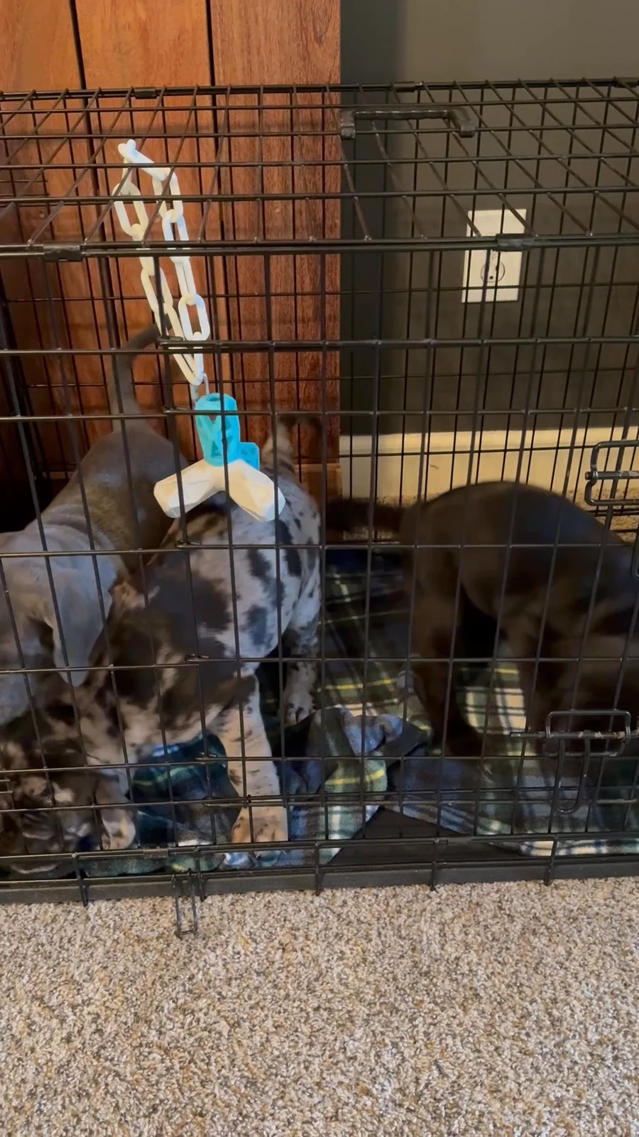 Maverick is a blue harlequin with one blue eye, one green eye, and a presence you can’t ignore. With his massive size, bold markings, and boundless personality, whether he’s racing across the yard at full speed, showing off his goofy antics, or just standing there looking majestic. He’s a total character who loves to “talk back,” insists on being a lap dog, and keeps us all laughing (and slightly out of breath trying to keep up). Maverick is equal parts beauty, brawn, and comic relief