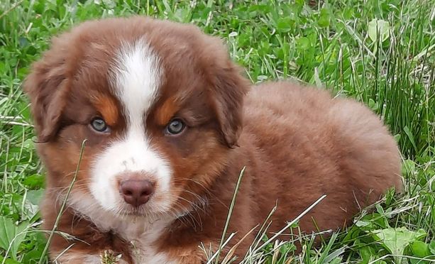 Our puppies include black, red merle, blue merle, and red. Colors will vary depending on the parent dogs.