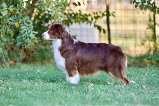 Cinnamon is a female Miniature American Shepherd. Carefully selected as a great representative of her breed, Amy decided to make her part of their program. Amy has passed Good Dog’s screening process, which involved a review of their breeding practices, environment, and the mental and physical health of their dogs.