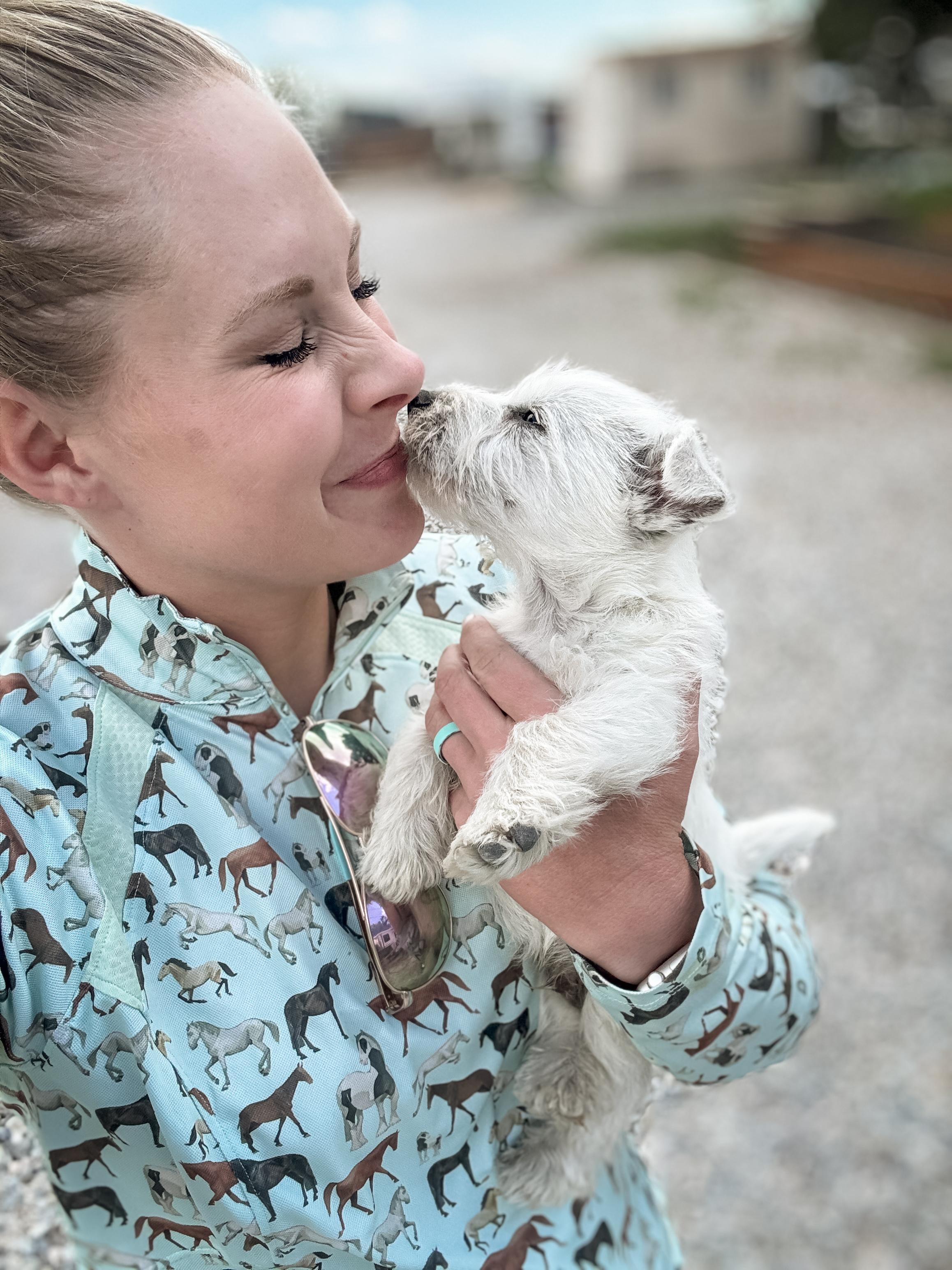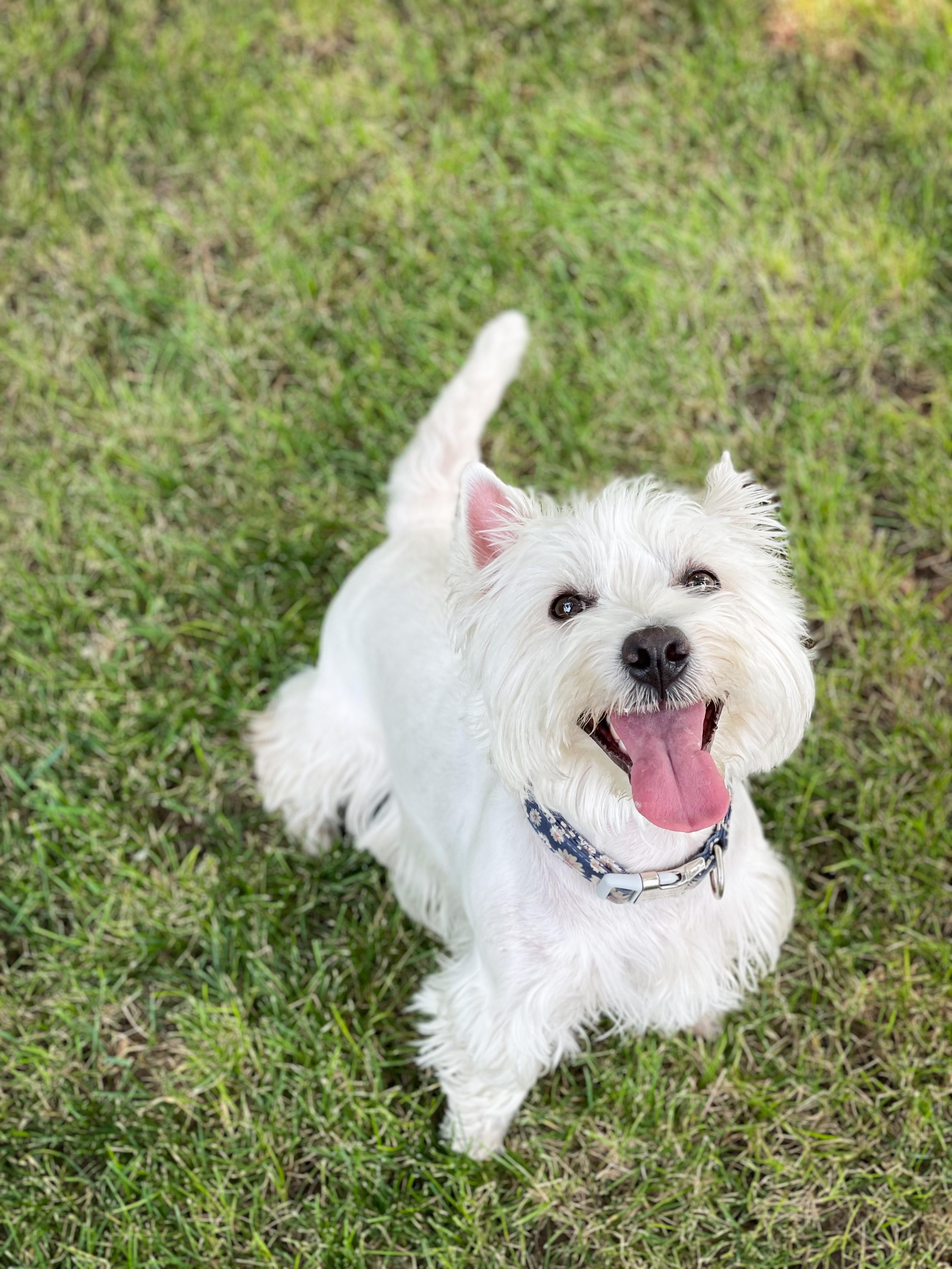 Roxie is full of personality. She loves to go on long walks in the field and protect the house from all the yard critters. She is sweet with children and SUPER playful. She usually hits her playfulness peak at about 10pm at night 😂. She is well trained and knows lots of cute tricks! Shes been an incredible mom with strong instincts. She usually hits our third generation “diamond in the ruff” Westie mom and is making us proud!