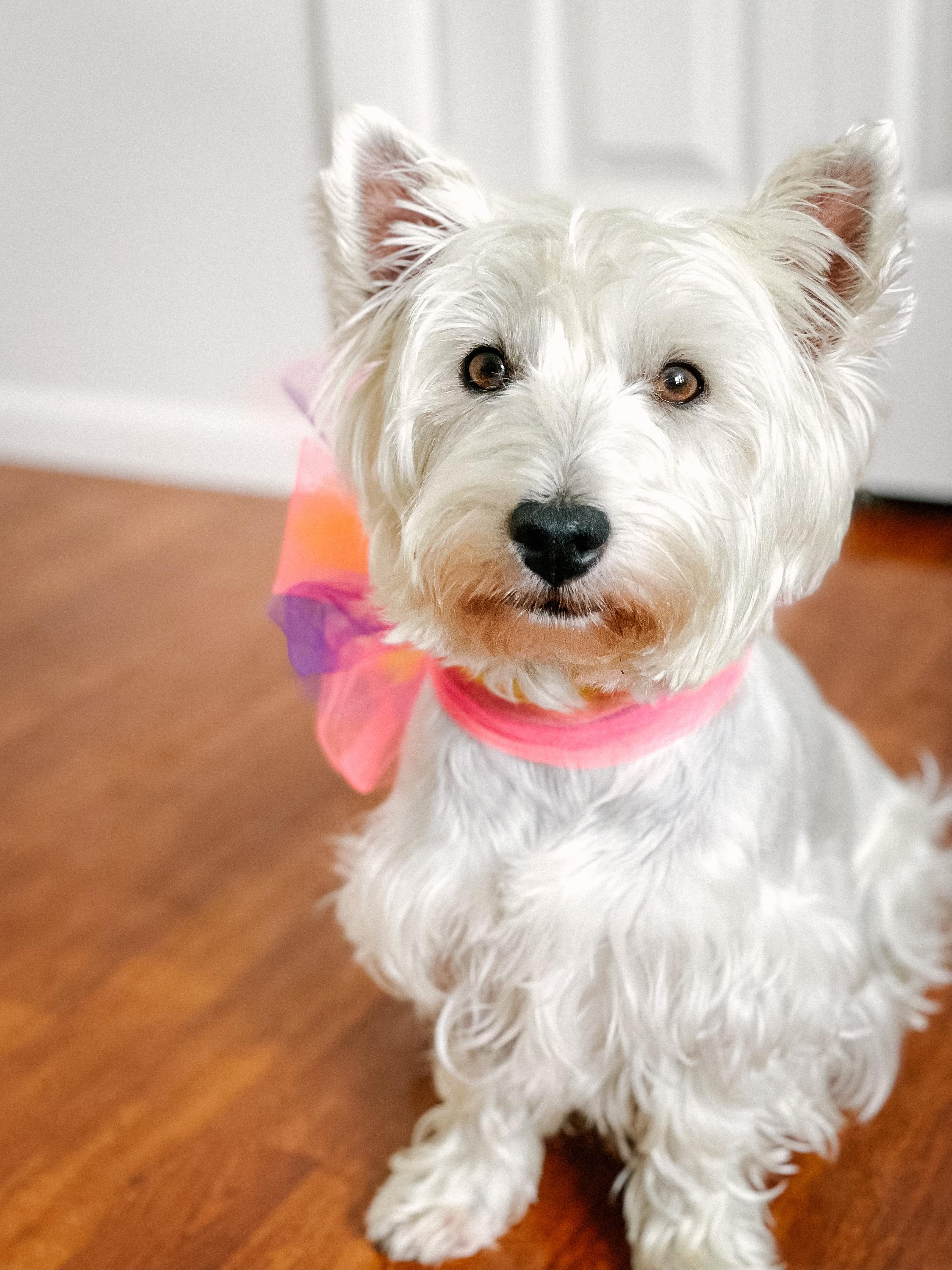 Pyper is a female West Highland White Terrier. Carefully selected as a great representative of her breed, Ashley decided to make her part of their program. Ashley has passed Good Dog’s screening process, which involved a review of their breeding practices, environment, and the mental and physical health of their dogs.