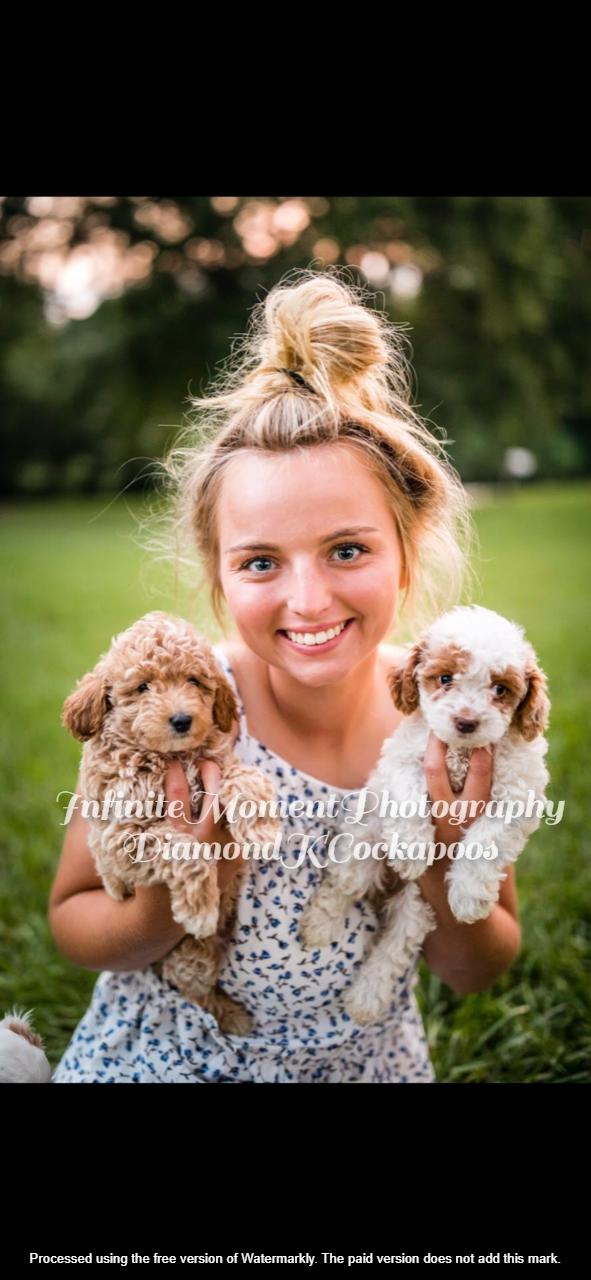 I highly recommend Kennedy and Diamond K! I got a first gen cockapoo puppy from her and he is happy and healthy. You can tell that the puppies are loved and cared for before you get them. He (formally maze) is doing wonderful and settled in so fast. Every part of this process has been easy and stress free due to the dedication Kennedy has to making sure your puppy is happy and healthy. She informed me of everything every step of the way. I will be recommending Diamond K to anyone wanting a puppy. ( the kind she breeds :) )