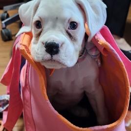 Amanda with Diamond Lane Boxers was great to work with. She was easy to communicate with through the Good Dog app, answered all questions in advance of meeting and shared photos via Facebook for us to see our girl, Winnie in action. We love our new girl and she is beautiful, healthy and filled with personality! Highly recommend working with Amanda if you are interested in healthy, beautiful Boxers.