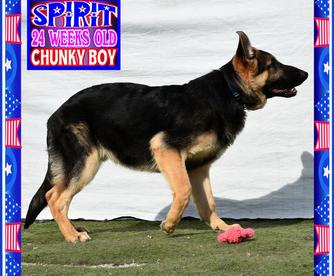 Angelic -- fits her name for her great personality... but is not Angelic is size -- she is one of our largest females which mean she is LARGE... Great bone structure like the old fashion German Shepherd..