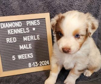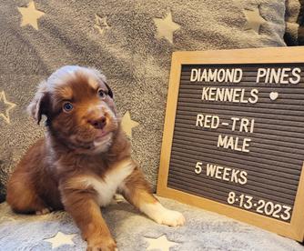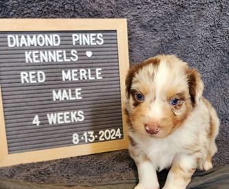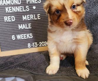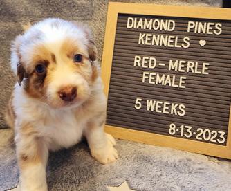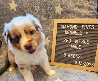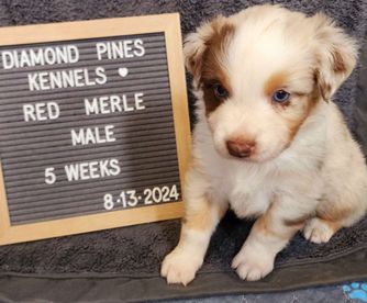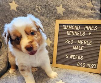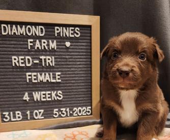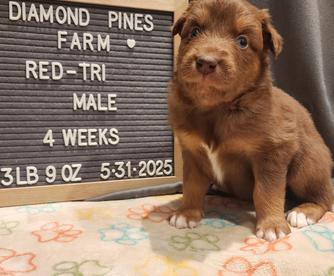 Our puppies include red & white, red merle, red, and red tri-color. Colors will vary depending on the parent dogs.