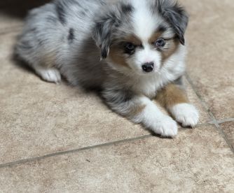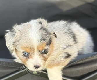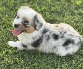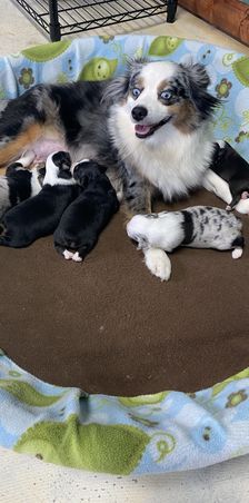 Our puppies include blue merle and black tri. Colors will vary depending on the parent dogs.