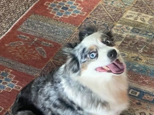 Reno is by far one of the most colored up Aussies and marks his pups! He us also the biggest “chicken” when it thunders or rains- starts shaking and trying to run under the bed!!