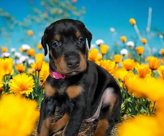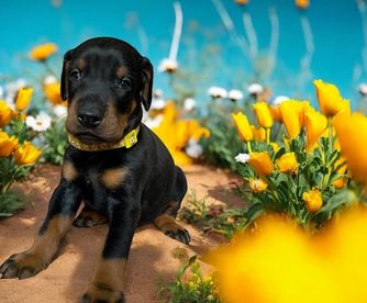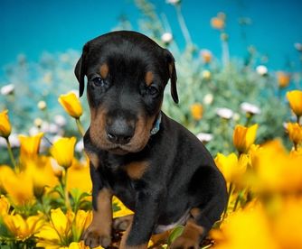 Our puppies include black and rust, blue and rust, and red and rust. Colors will vary depending on the parent dogs.