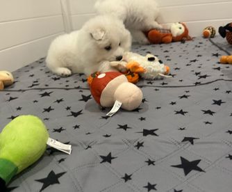 I'm Katrina K., the breeder behind Diamond Star Samoyeds located in Phoenix, AZ. Diamond Star Samoyeds is the result of substantial time and research in order to produce beautiful and well tempered dogs. My family began breeding when I was young, and I always loved our Samoyed (Nikki) whom I grew up with. She was incredibly gentle, smart, and sweet as can be! Because of my fond memories of her, I knew I wanted to continue working with Samoyeds. In 2016, I flew to Buffalo, NY to pick up my sweet Maggie (pictured above). She was the founding bitch of Diamond Star Samoyeds. Sassy but sweet, she changed my life forever. She was always by my side. Unfortunately, Maggie developed Cutaneous Lymphoma and it spread rapidly. I lost her after just 9 and a half short months - although it felt like I had her for a lifetime, it wasn’t long enough. Following the loss of Maggie, Piper and Finley were introduced. Piper has the same sass and spunk that Maggie had - maybe even a bit more). She is incredibly loving and enjoys napping on the bed or watching the birds in the backyard. Like many Samoyeds, Piper loved to dig when she was younger - she would love to show anybody interested her excavation projects. Finley, an import and international champion, is Pipers perfect compliment. He is sweet as the day is long - he loves attention but rarely barks. Finley has since obtained his AKC Ch, CGC, TKN and ATT. He is a few points away from his GCh, and we will be working on barn hunt and finishing his BCAT title. He is the laziest boy, but he loves to play in the backyard in the morning and evening with Piper. He loves sleeping in his crate with his stuffed bear tucked under his chin. If you'd like to know more, please do not hesitate to contact me!