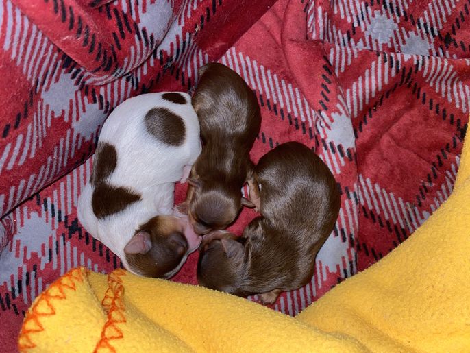 Our puppies include chocolate, tan and white, chocolate and tan, parti, and black and tan. Colors will vary depending on the parent dogs.