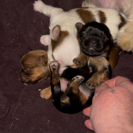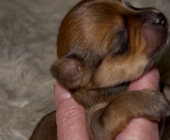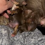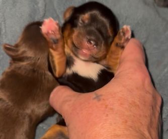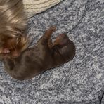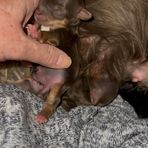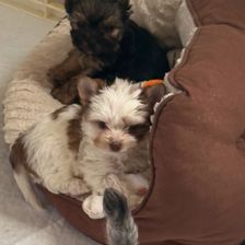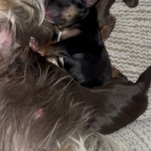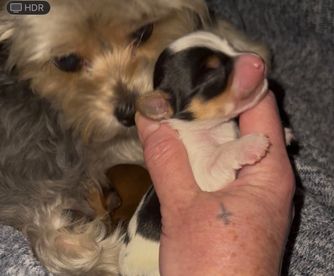 Nala had 2 boys last Friday. A chocolate & tan with white & a traditional black & tan Yorkie.