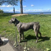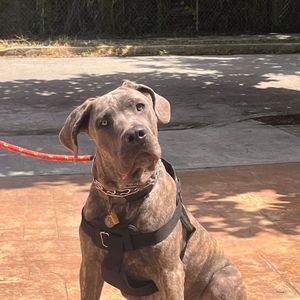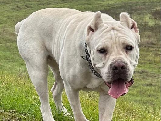 This 120-pound female Cane Corso is an eye-catching beauty with a soft, predominantly white coat, accented by subtle cream or light fawn highlights. AKC-registered, she boasts the breed’s signature muscular frame and confident presence. Despite her imposing size, she has a calm and gentle nature, making her both an excellent protector and a devoted family companion. Her striking appearance, combined with her loyal and affectionate personality, truly embodies the Cane Corso's perfect balance of strength and tenderness.