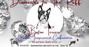 I'm Shannon C., the breeder behind Diamonds In The Ruff Boston Terriers located in Denver, CO. Our ultimate goal is to produce healthy, Sound Temperaments, Correct Conformation, and versatile pups that can excel within various performance venues and have the ability to be the greatest family companions. We raise all of our dogs with love in our home. We have high expectations for our puppies and make sure to place each one in an enriching and loving home that will match their temperament and personality!