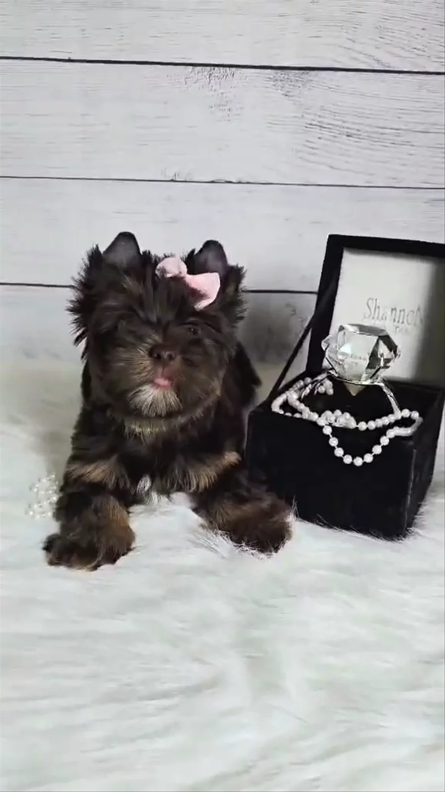 Aiyana is a female Yorkshire Terrier over 2 years old. Carefully selected as a great representative of her breed, Mona decided to make her part of their program. Mona has passed Good Dog’s screening process, which involved a review of their breeding practices, environment, and the mental and physical health of their dogs.