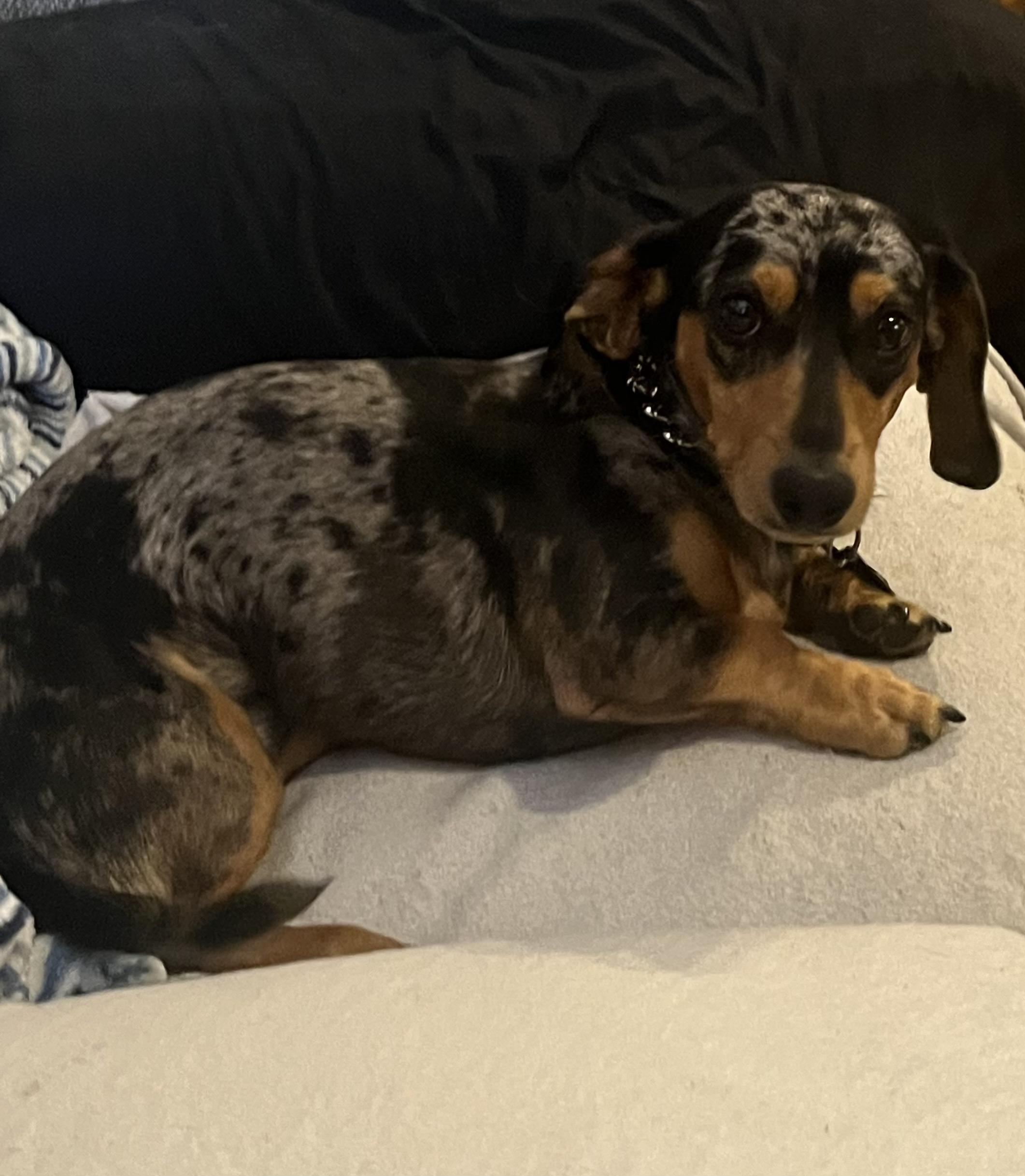 Sir Wolfgang is a wonderful dog! He is obedient, handsome and has a hugely funny personality! He's quite the ladies man, as he will sit up on his hind legs on the sofa watching tv!! His favorite place is under a blanket snuggling with you. He will keep up with you no matter what you are doing but loves to watch tv and snuggle! He is a mini dapple that is certified by DNA testing to be 100% Dachshund (someone forgot to sign his AKC paper work along the way, his recent ancestors were AKC) I am currently in the works to get him CKC certified, so you would get those papers once his is approved.