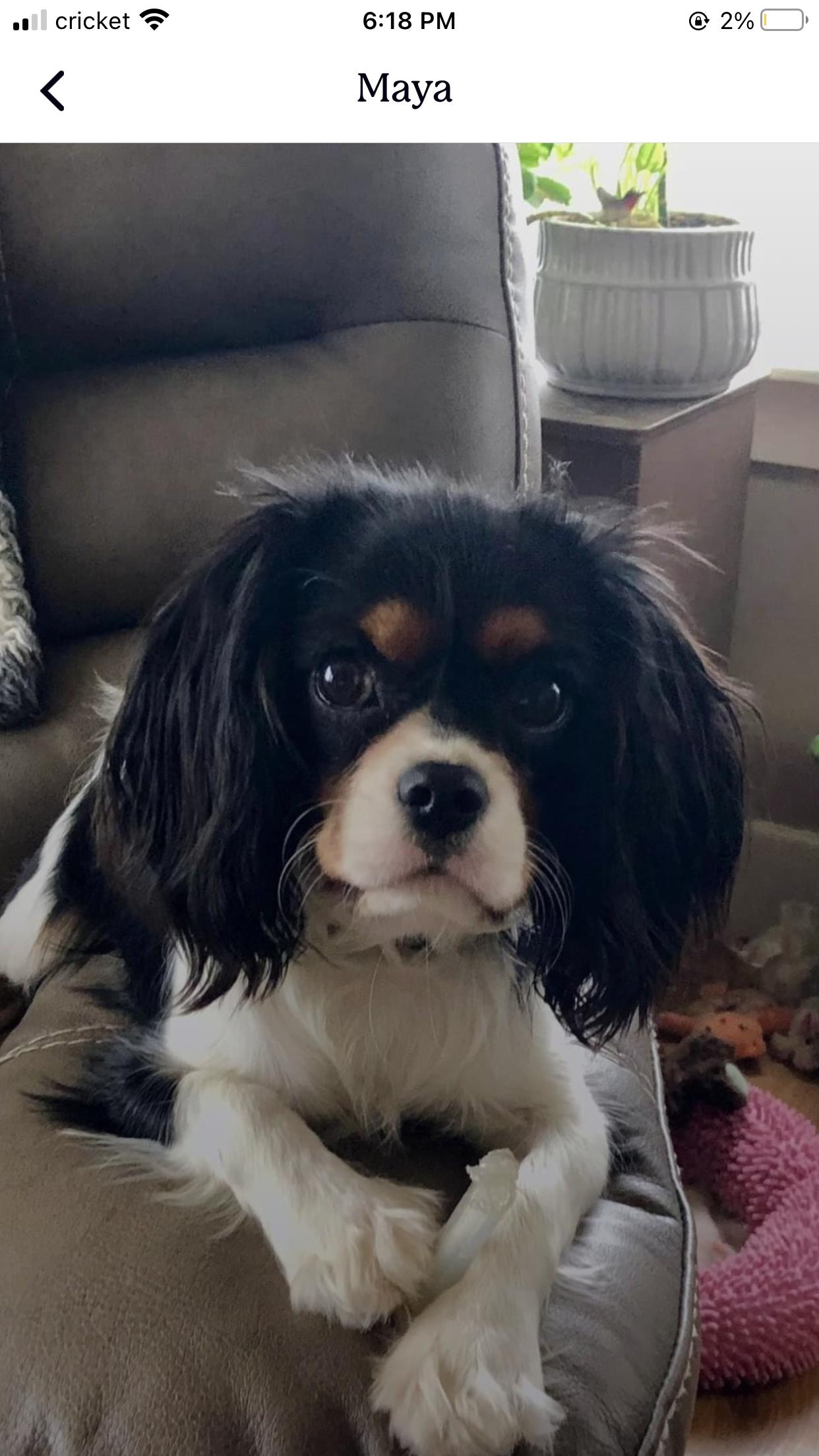 Chloe is a female Cavalier King Charles Spaniel. Carefully selected as a great representative of her breed, Diane decided to make her part of their program. Diane has passed Good Dog’s screening process, which involved a review of their breeding practices, environment, and the mental and physical health of their dogs.