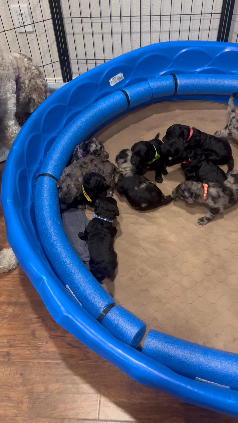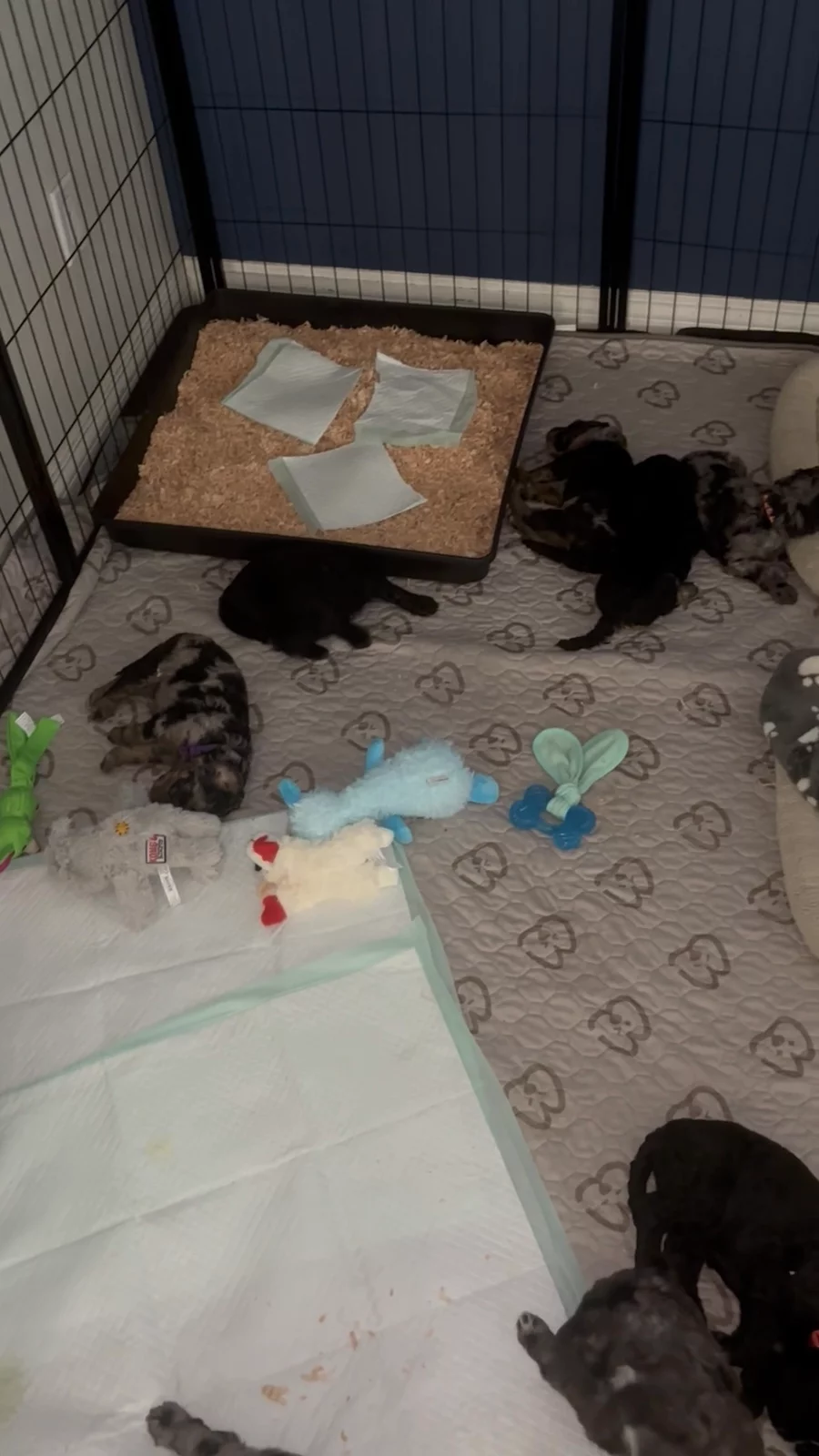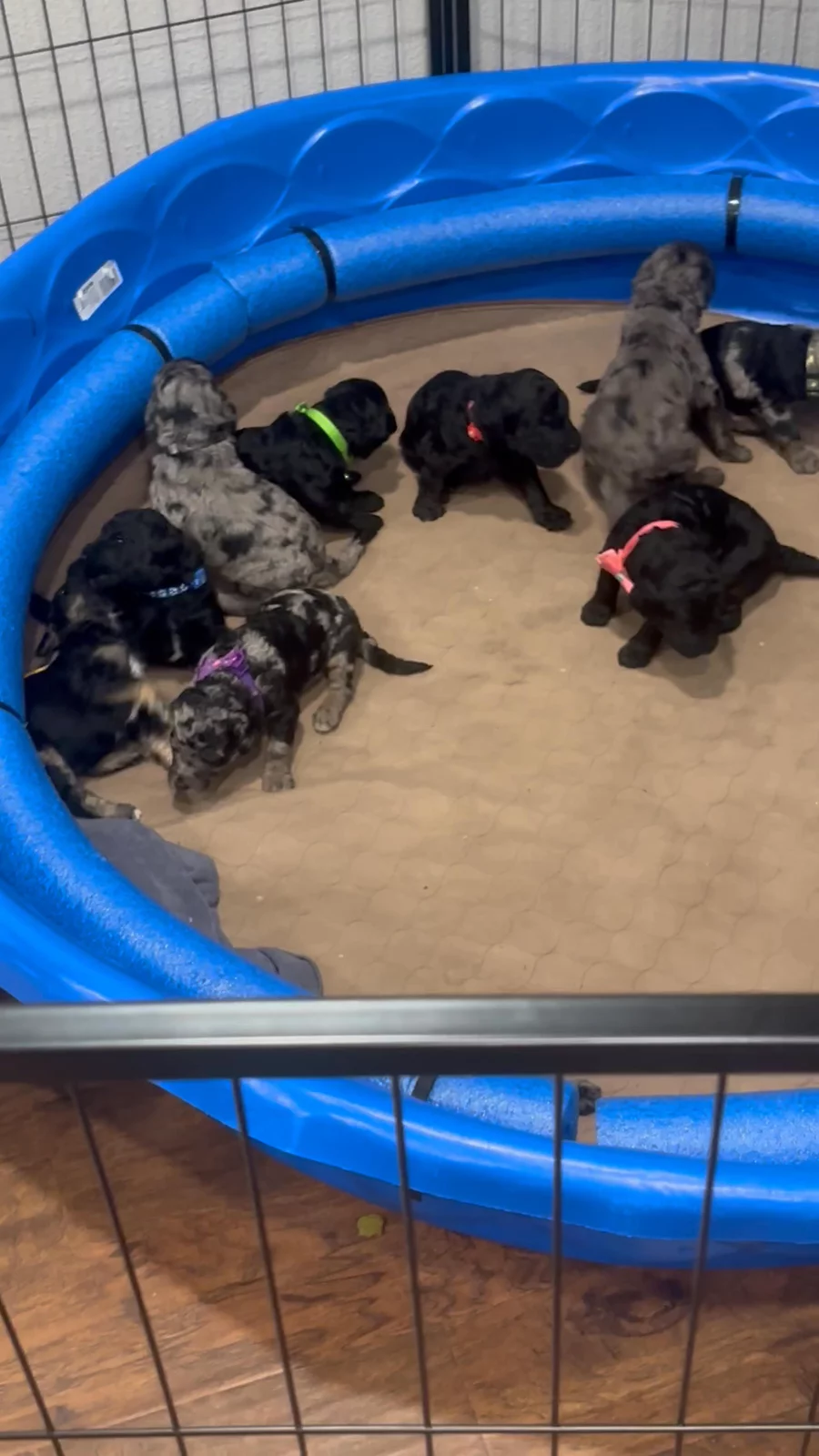 Puppies are no longer in their whelping pool. They have more room now in play yard and we will start littering training them. Stay tuned for next video to watch them as they eat their puppy mush.