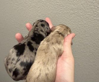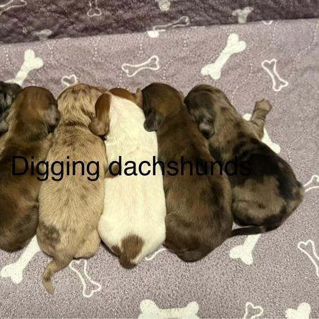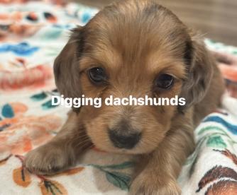 I'm Amber V., the breeder behind Digging Dachshunds located in Denison, TX. We are dedicated to providing healthy and socialized pups. Our goal is to improve the breed which is why all adult dogs have had appropriate health and dna testing. All pups will be socialized, and will come vaccinated, dewormed, examined and cleared by a vet.