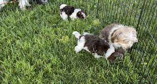 Our puppies are chocolate tan and white. Colors will vary depending on the parent dogs.