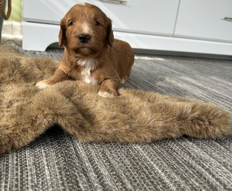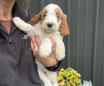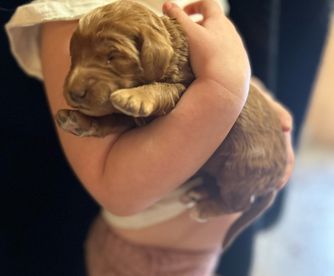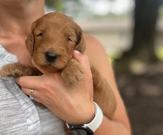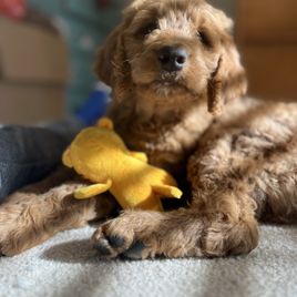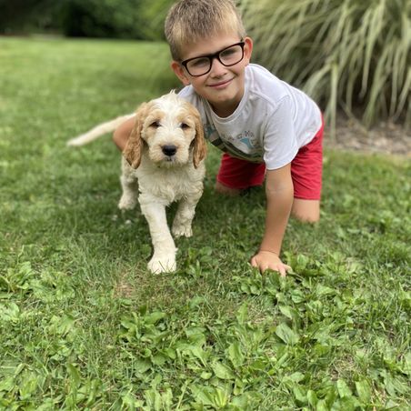 Diller Doodle Pups have been so amazing to us. Since bringing Hudson home we have had the best time with him. Hudson has met many of the dogs in our neighborhood as well as our other dog that he wakes up to annoy everyday. He is a great addition to our family and my girlfriend and I couldn't be more happier picking him out. Hudson already loves some new toys, playing tug of war or roughhousing with our other dog and getting zoomies every minute of the day. We can't wait to see what the future has in hold for our little family.
