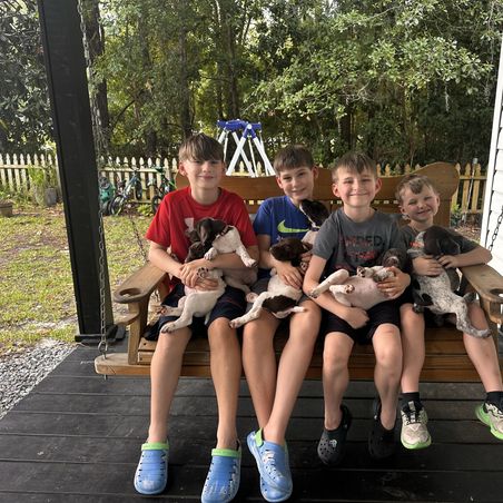 I'm Mindy D., the breeder behind Dillon's GSPs located in Macclenny, FL. We work hard to produce healthy, well-rounded puppies that will make others as happy as our dogs have made us! We find so much joy in watching our puppies grow and develop their own unique personalities. We can’t wait for you to meet your next loving and loyal companion!