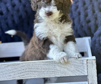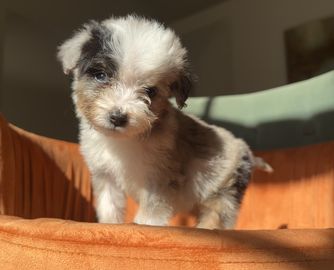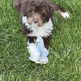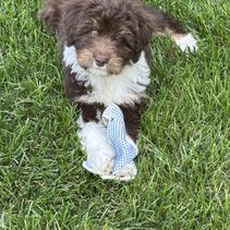 Dinah was so responsive to my initial inquiry, responding within just a few minutes, and keeping us updated along the way. It is clear that she and her family love their puppies well and our new puppy, Cole, has fit right in with our family! I would highly recommend Dinah to anyone looking for a sweet, well-adjusted and beautiful Aussiedoodle puppy.