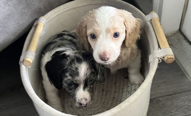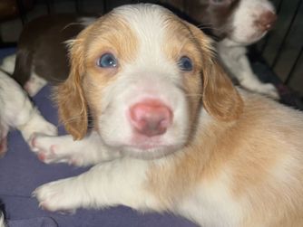 Our puppies include piebald, cream, red, black, chocolate, black and tan, chocolate and tan, blue and tan, and dapple. Colors will vary depending on the parent dogs.