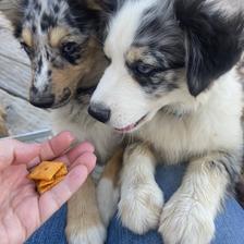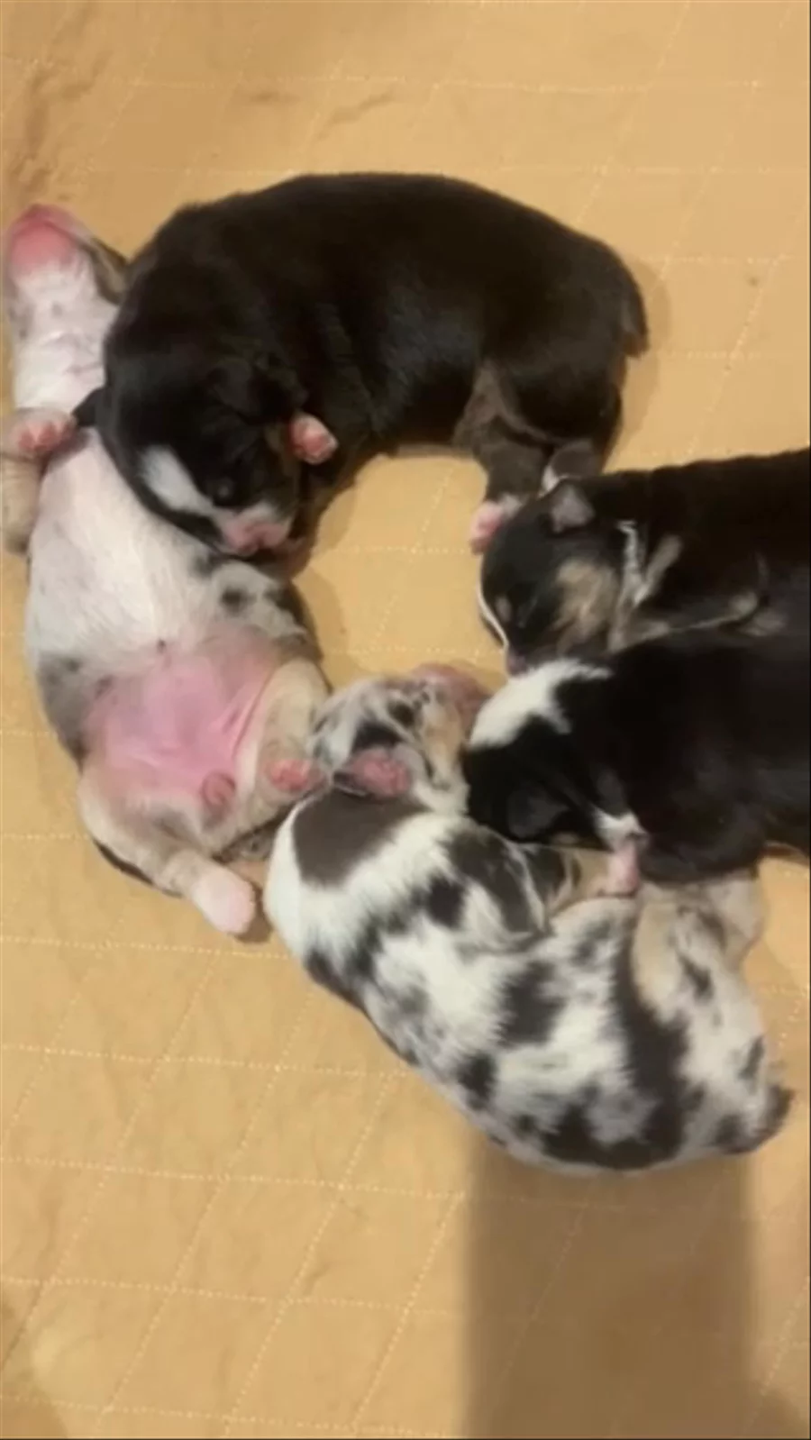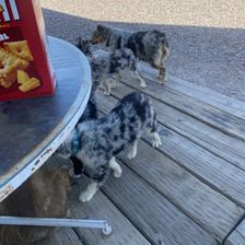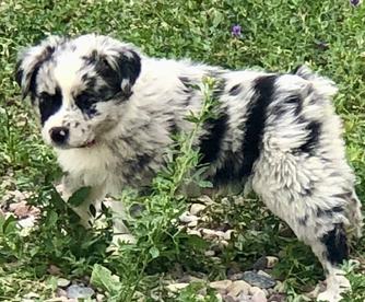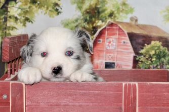 Our puppies include blue merle and red merle. Colors will vary depending on the parent dogs.