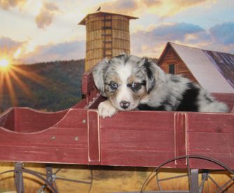 I really couldn't be happier than with my choice of breeders. Cindy was fabulous to work with before, during and after the sale. She went out of her way to supply me with the information I needed every step of the way. She knows her stuff and she knows her breed. I explained to her that I'd never had an Aussie, but seemed to be drawn to them as I wanted a dog with more substance than my beloved Miniature Pinschers and with a better health record than my Miniature Schnauzers. She was even accepting of the fact that the only Aussie I had ever met was a dog I actually couldn't stand because he was so I'll mannered and nippy. That dog happened to be a Merle, so I was sure I didn't want a Merle. Period! What did I do? I turned around and fell in love with a little red merle! I think Cindy was as surprised as I that I picked him. I told her his name was Merlin the Magical Merle because he had to have cast a magical spell on me! Merlin is absolutely the perfect dog for me. When I picked him up he immediately settled into my arms like he had been there every day of his life. He was an angel on the entire trip home and has shown an attitude that he takes everything in stride. That only happens when a pup has had an outstanding puppyhood home life. He is a happy go lucky well adjusted little guy. I highly recommend Dirt Road Aussies of Montana to anyone who wants a high quality, well adjusted pup. One further note, When I took him to the vet for his next vaccination, my vet was astounded at the way the paperwork had been handled. Everything was precise and clear. She was wishing that all breeders did such a great job. When she examined him he was pronounced to be an exceptional puppy, healthy with proper bone structure, excellent joints, no knee problems, clear eyes, great teeth, good ears and everything a well bred puppy should be. She asked where he had come from and took the Dirt Road Aussies of Montaha name down so she could refer any of her clients to them.